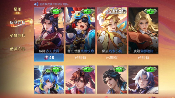 春节期间王者荣耀不仅上线了众多皮肤,就连皮肤碎片商城,也迎来了更新。